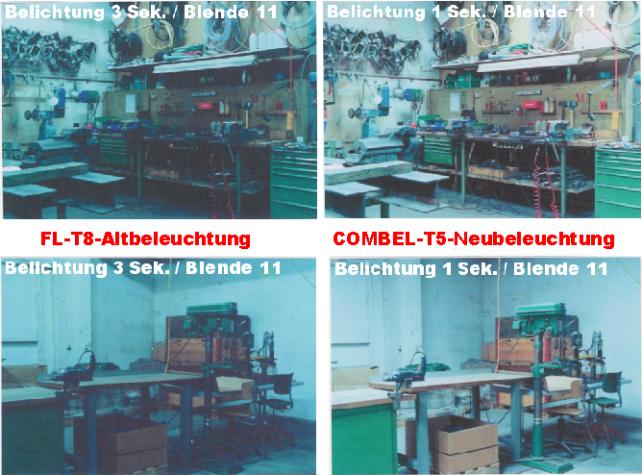 der 51 Watt geringeren Energieaufnahme erzielt die neue COMBEL T5-Beleuchtung,
